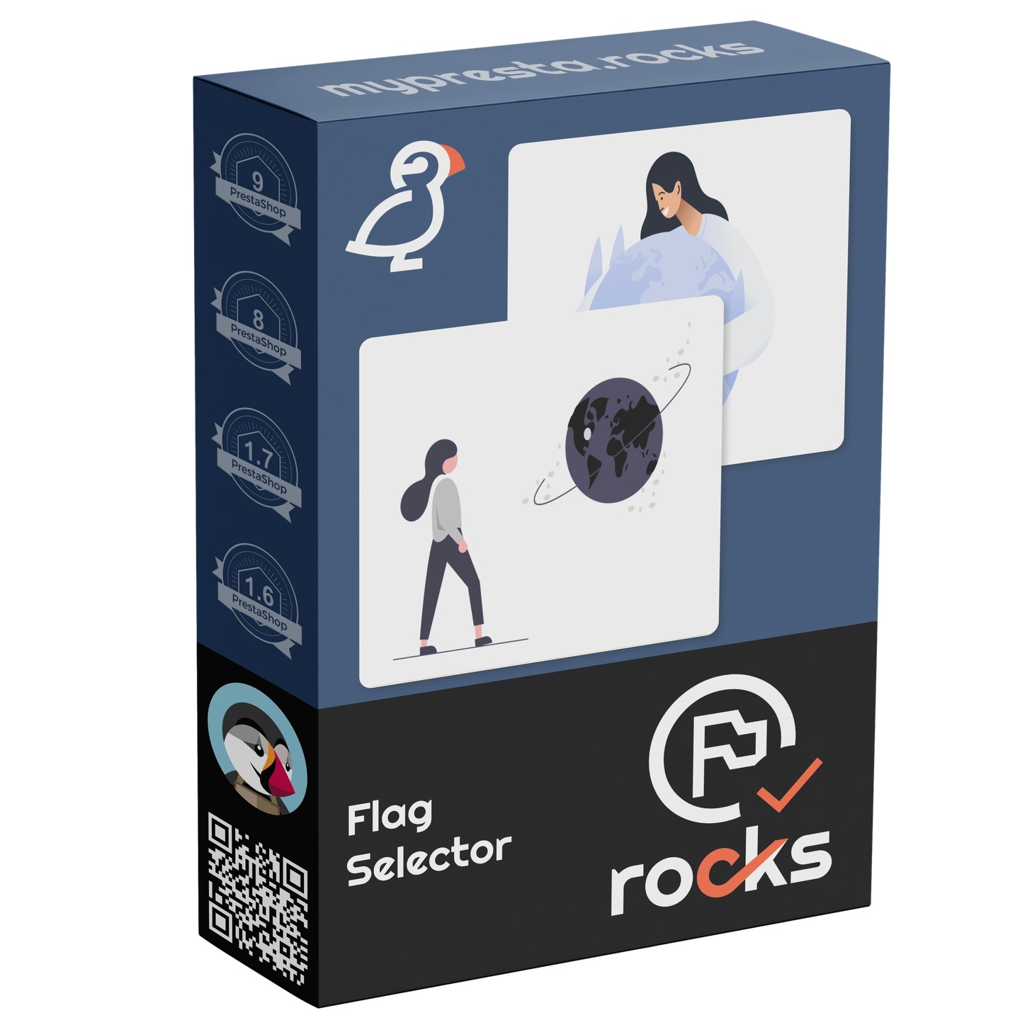 Flag Selector replaces the default PrestaShop language dropdown with a flag-based selector. Instead of text labels, customers see recognizable country flags for each available language — making language switching intuitive and space-efficient.